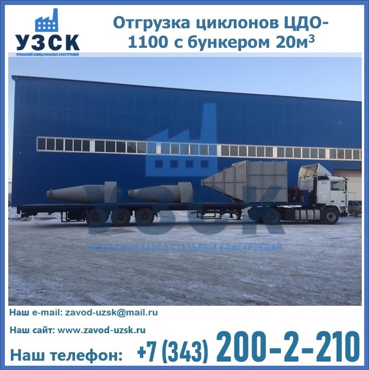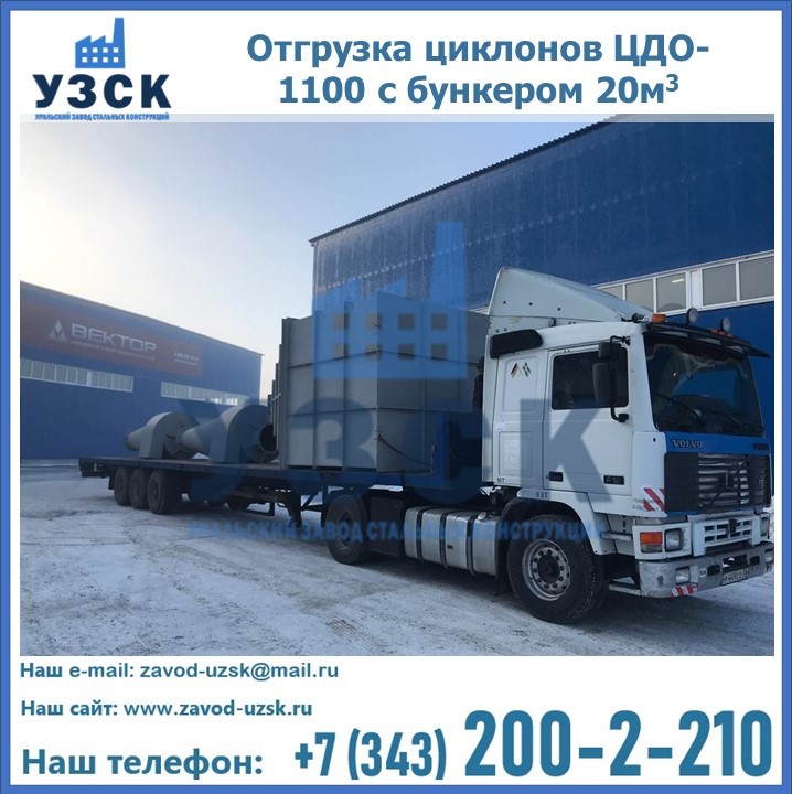 Циклоны ЦДО-1100 с бункером на 20 кубов были отгружены в декабре 2018 года в г. Новосибирск Бийск.