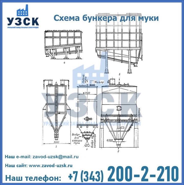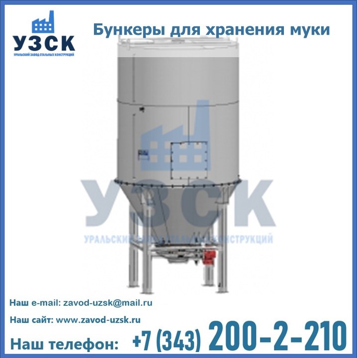 Завод «УЗСК» в Бийске проектирует, производит и поставляет целевое оборудование, в том числе, бункеры для хранения муки и прочих сыпучих материалов.