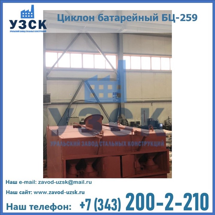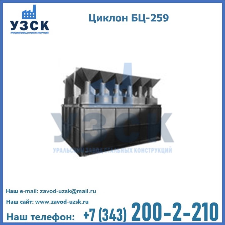 Приобрести качественное оборудование, в том числе, циклоны БЦ-259, можно в компании УЗСК в Бийске. Мы предлагаем долговечную и надежную продукцию по приемлемой цене. Заказать и купить циклоны или другие изделия высокого качества можно через сайт Уральского Завода Стальных Конструкций, или позвонив по указанному в разделе «Контакты» телефону.