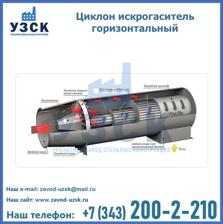 Горизонтальные циклоны-искрогасители ЦГ поставляются в Бийске в сборке или же транспортными единицами для последующей сборки, если предназначены для работы с большими объемами.