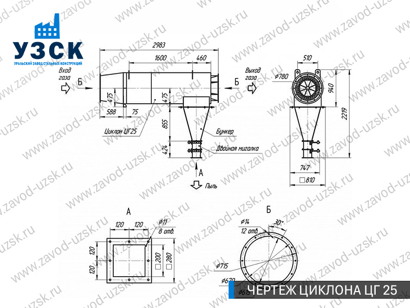 Монтаж циклона-искрогасителя ЦГ должен осуществляться непосредственно к горизонтальному вентиляционному каналу на входе в систему фильтрации и аспирации. Заказать изготовление по индивидуальному техзаданию или купить готовый циклон-искрогаситель ЦГ на заводе УЗСК в Бийске можно, оставив заявку прямо на сайте или позвонив по указанному телефону, уточнив все детали касательно продажи оборудования.