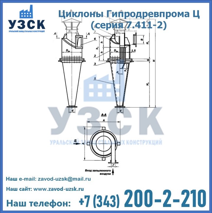 Циклоны Гипродревпрома Ц (серия 7.411-2) высокого качества можно купить в компании «УЗСК» в Бийске. Наши специалисты предоставят всю необходимую информацию информацию и помогут с выбором модели циклона. Подробные технические характеристики, конструкцию, параметры, ассортимент и стоимость продукции можно также найти на сайте УЗСК.