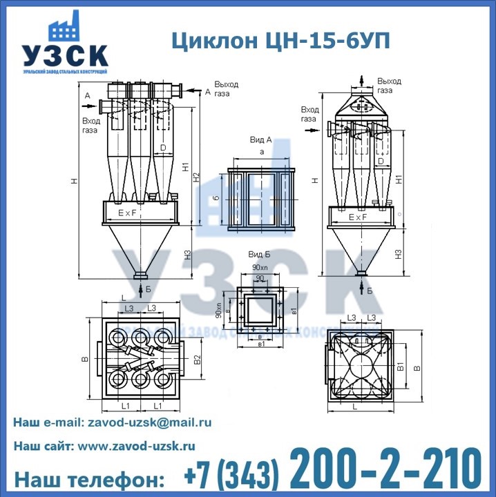 Завод «УЗСК» в Бийске предлагает большой выбор циклонов ЦН-15-900×6УП и прочих устройств, полностью укомплектованных и готовых к эксплуатации. Мы гарантируем соответствие оборудования всем требованиям ГОСТ и ТУ, износостойкость и высокую производительность предлагаемого оборудования. Уральский Завод Стальных Конструкций изготавливает и продает надежное, эффективное и производительное оборудование, имеющее длительную гарантию и большой эксплуатационный ресурс. Если требуется изготовить циклон нестандартных размеров, то такой вариант выполнения заказа тоже предусмотрен, так как предприятие имеет собственные производственные площади и надежных поставщиков. На все поставляемое или производимое оборудование имеются чертежи и прочая техническая документация. Заказать и купить циклоны или прочее оборудование высокого качества и по доступной цене можно через наш сайт или по указанному в разделе «Контакты» телефону.