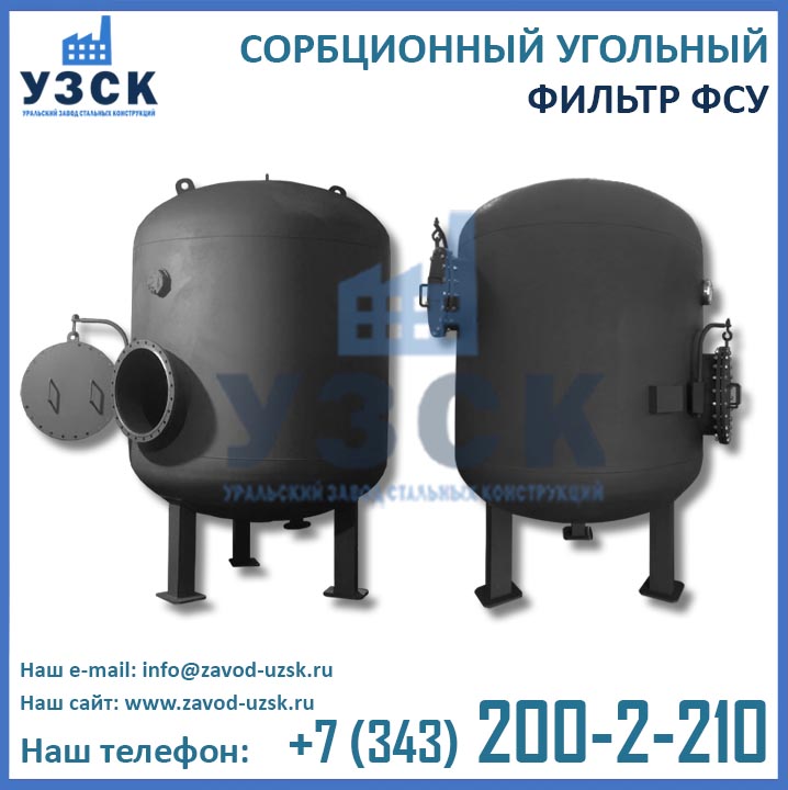Фильтр ФСУ 1.0-0.6 – это угольный сорбционный фильтр, предназначенный для обезмасливания воды и парового конденсата, удаления привкуса, запахов, органических примесей и остатков нефтепродуктов путем сорбции (впитывания). Сорбционный процесс осуществляется при помощи сорбента, засыпающегося в корпус фильтра. Наиболее часто в качестве впитывающего материала применяется древесный, коксовый или каменный активированный уголь, но могут использоваться и другие сорбенты, например, МИУ-С, цеолит, алюмосиликаты и пр.