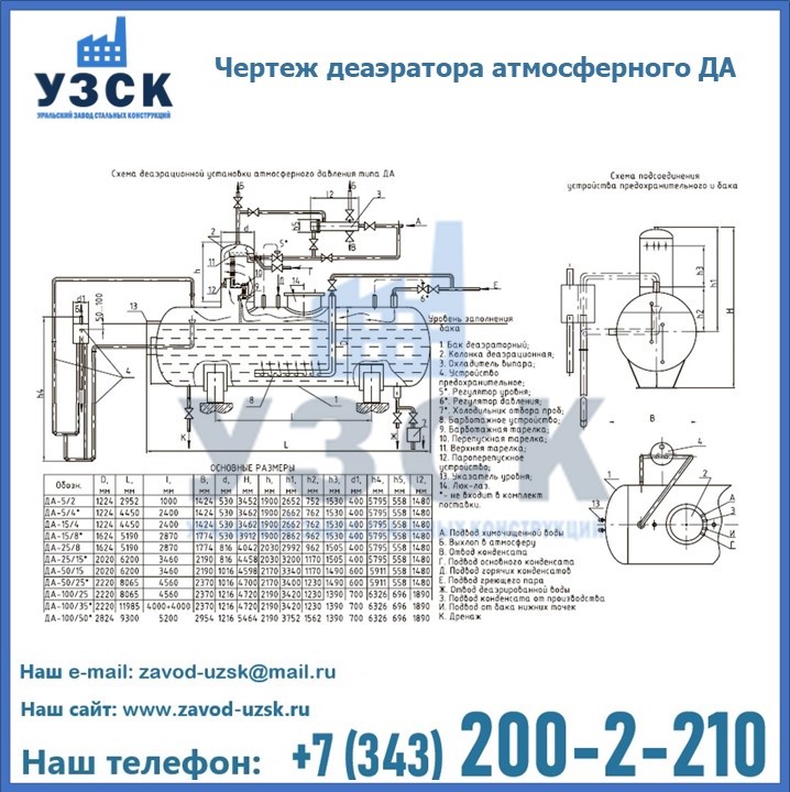 Приобрести качественное оборудование, в том числе, деаэраторы ДА, можно в компании УЗСК в Бийске. Мы предлагаем долговечную и надежную продукцию по приемлемой цене. Заказать и купить деаэраторы или другие изделия высокого качества можно через сайт Уральского Завода Стальных Конструкций, или позвонив по указанному в разделе «Контакты» телефону.